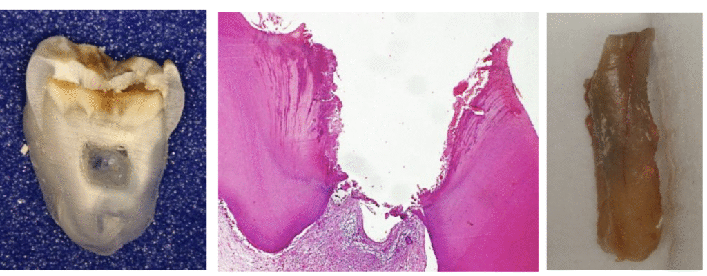 組織反応を顕微鏡的に確認したい抜去歯牙・歯髄、歯周治療で採取した肉芽組織・歯石、インプラント植立時の骨組織、骨増生後の組織、補填材などの病理組織標本の作製を受託致します。